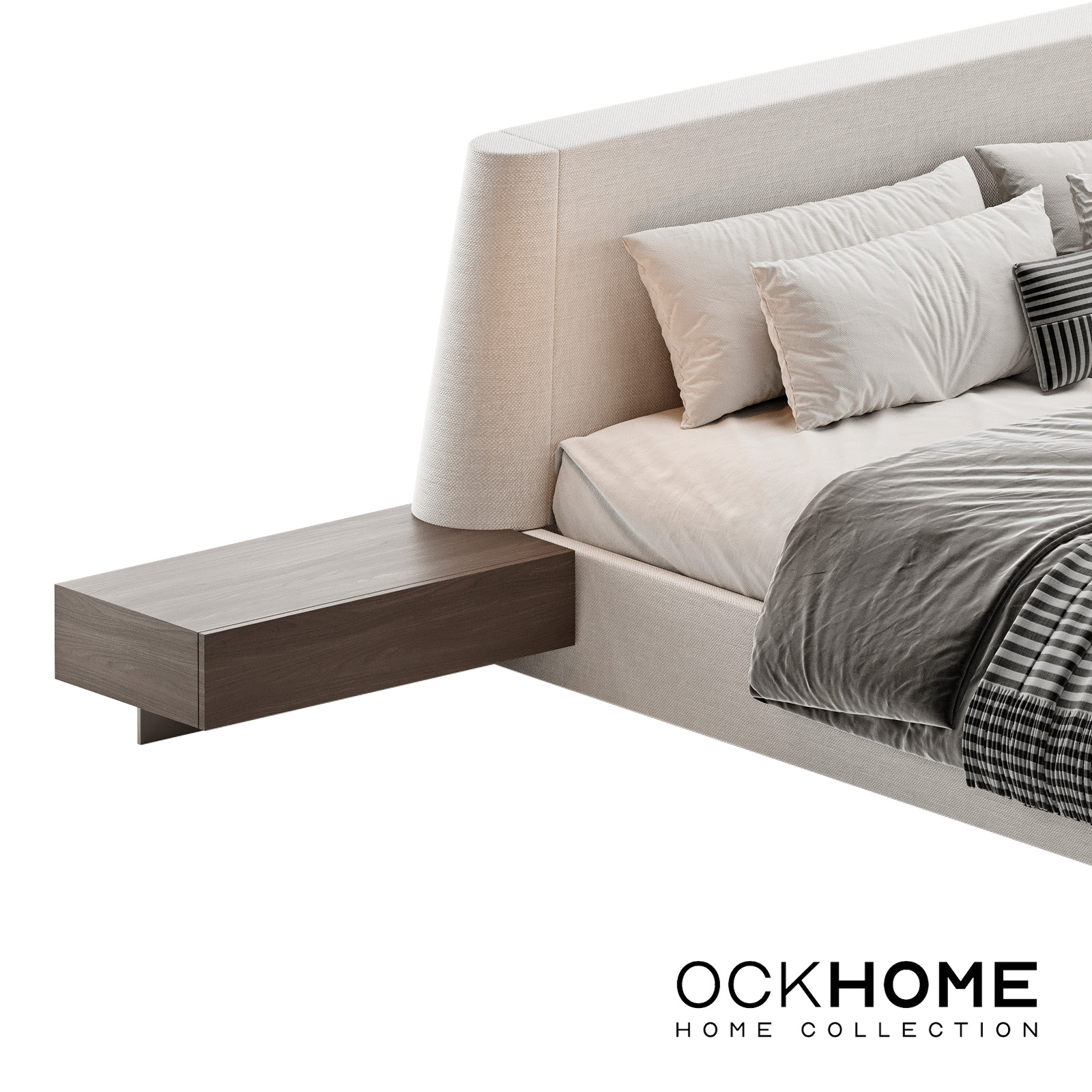 The base of the PEACH bed is supported by a solid metal frame along its perimeter, ensuring durability and a sleek design. The bed fronts are formed by soft, regular geometric modules, while the headboard is voluminous and low, exuding a sense of understated luxury. The distinct inclined left and right edges of the headboard give the PEACH bed its unique charm, creating a comfortable and stylish focal point for your bedroom. Its innovative design harmonizes modern aesthetics with functional comfort, making it a standout choice for contemporary interiors. PEACH combines form and function to offer an inviting retreat that perfectly balances elegance and coziness.